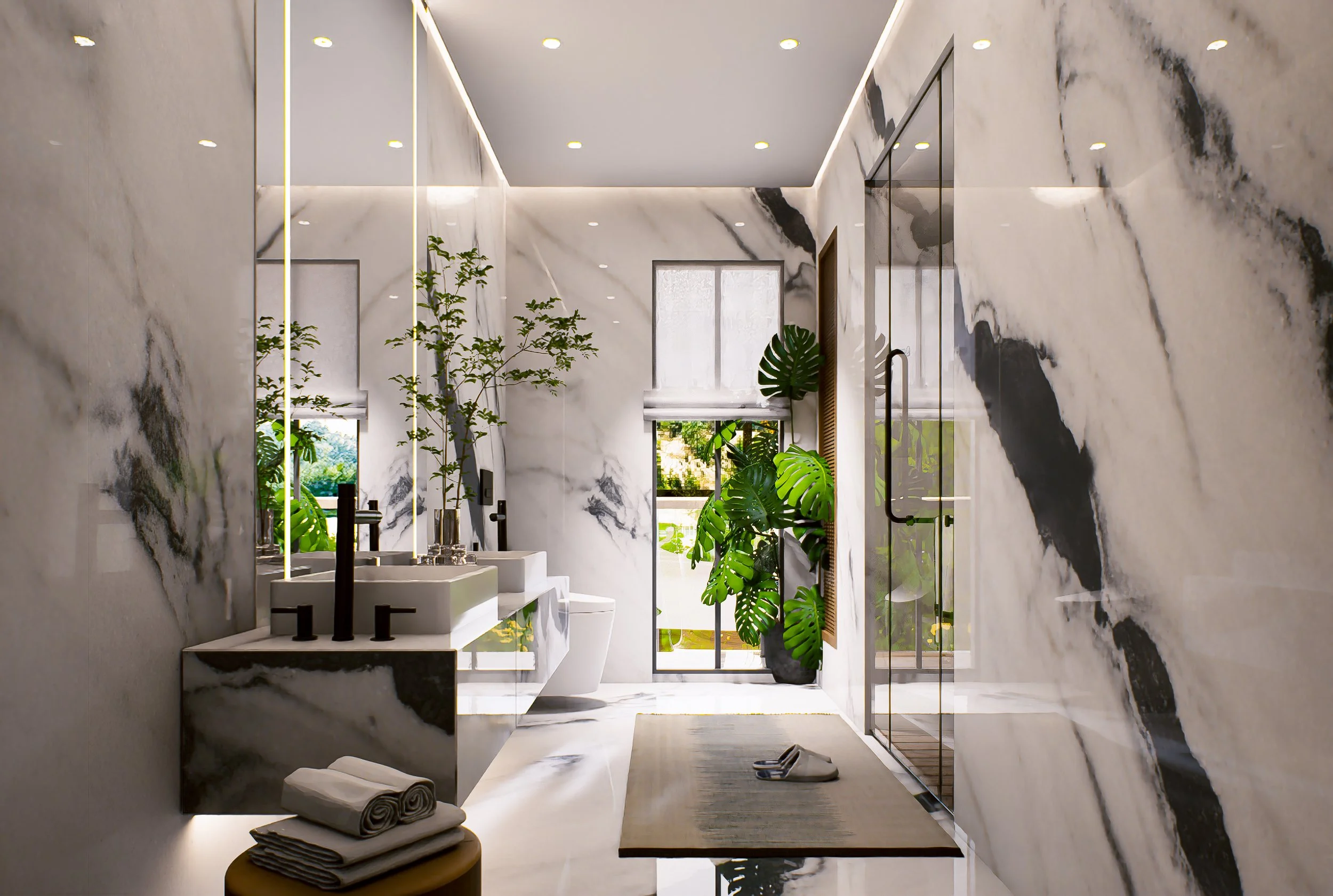 Opt for the Admirals Suite. The package is an upgrade on the base specification of the estates. Stunning marble finishes , the best that toto has to offer with the best of Hansgrohe fittings make this the ultimate upgrade.